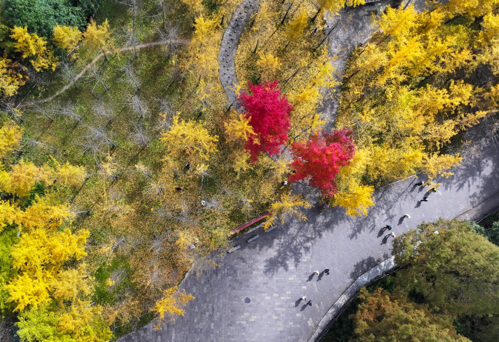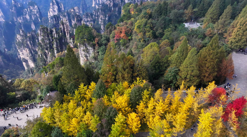 2025年11月4日,湖南张家界国家森林公园天子山景区层林尽染,色彩斑斓,宛若一幅秋日画卷。