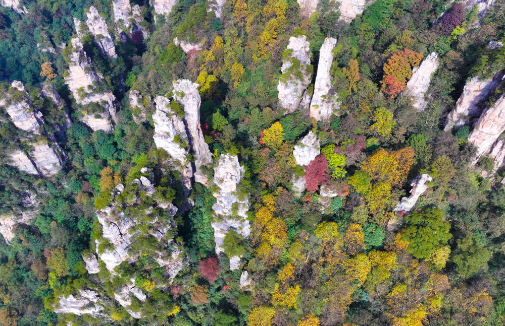 ↑2025年11月4日拍摄的湖南张家界国家森林公园天子山景区。(无人机照片)CICPHOTO/吴勇兵 摄