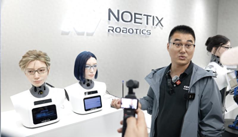 此外,记者在公司展厅里发现了许多表情十分丰富的“仿生人”机器人。松延动力商务经理刘大开介绍,这是全球范围内首个脸部突破30个自由度的机器人“小诺”,其可以具备表情控制,表情随动和语音对话功能,通过外接的平板设备就可以模仿真人五官的动作。可以应用在养老陪伴、展厅接待、心理疏导等。